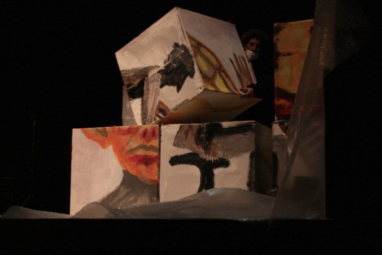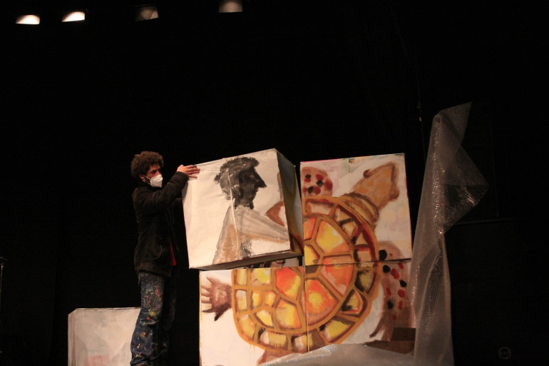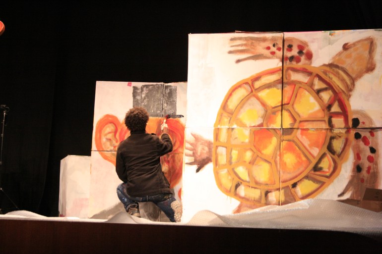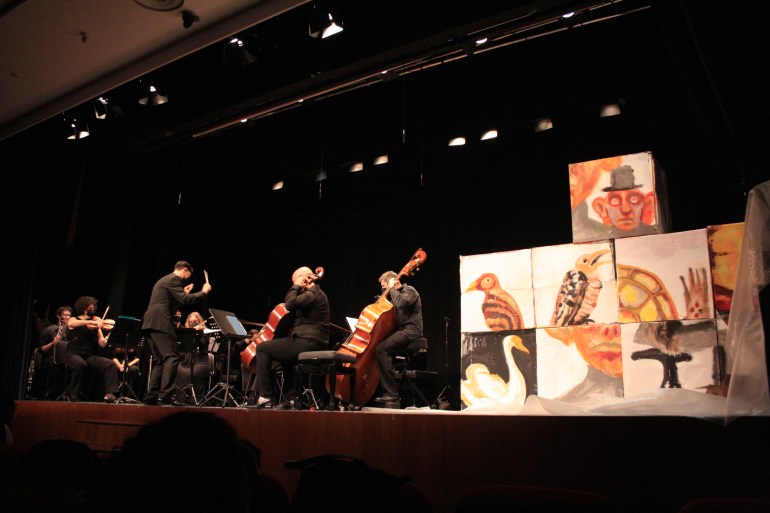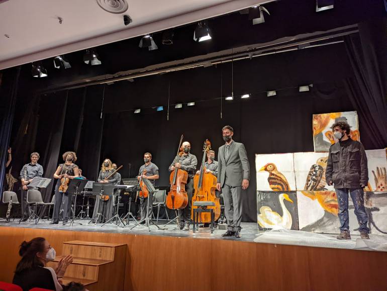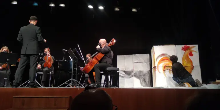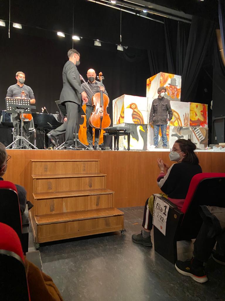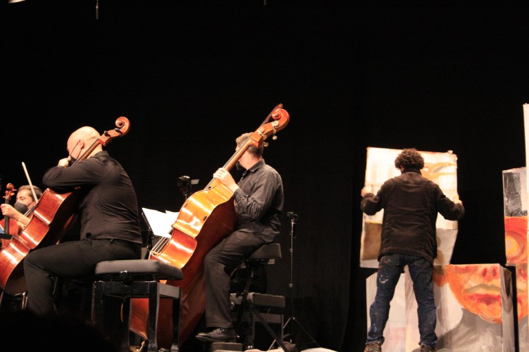 Pintura en directo durante el concierto Le Carnaval des animaux en la Casa de Cultura de Picassent, Valencia. 2022.